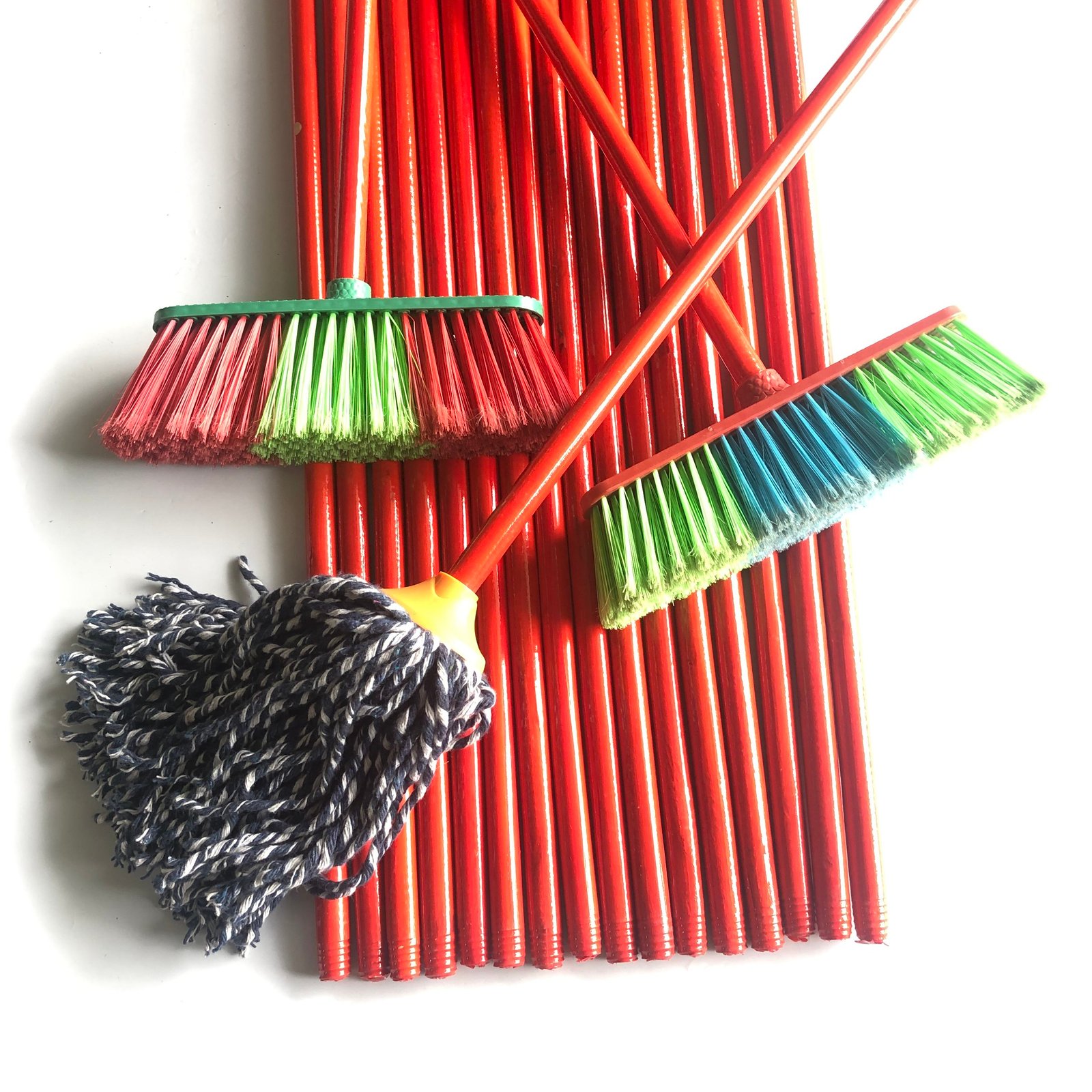 What materials do you use for your broom and mop handles?